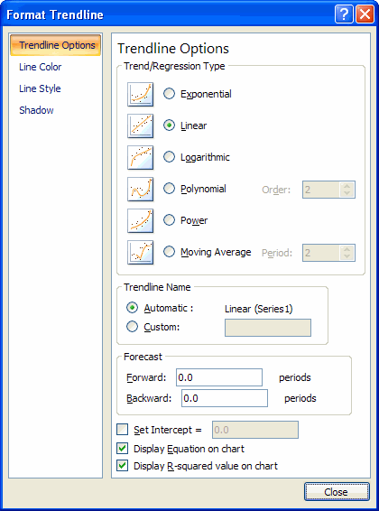 در پنجره Format Trendline (مطابق شکل زیر)،
