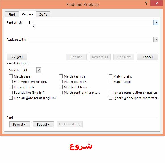 در قسمت Find what عبارت زیر را تایپ کنید.\(*\)